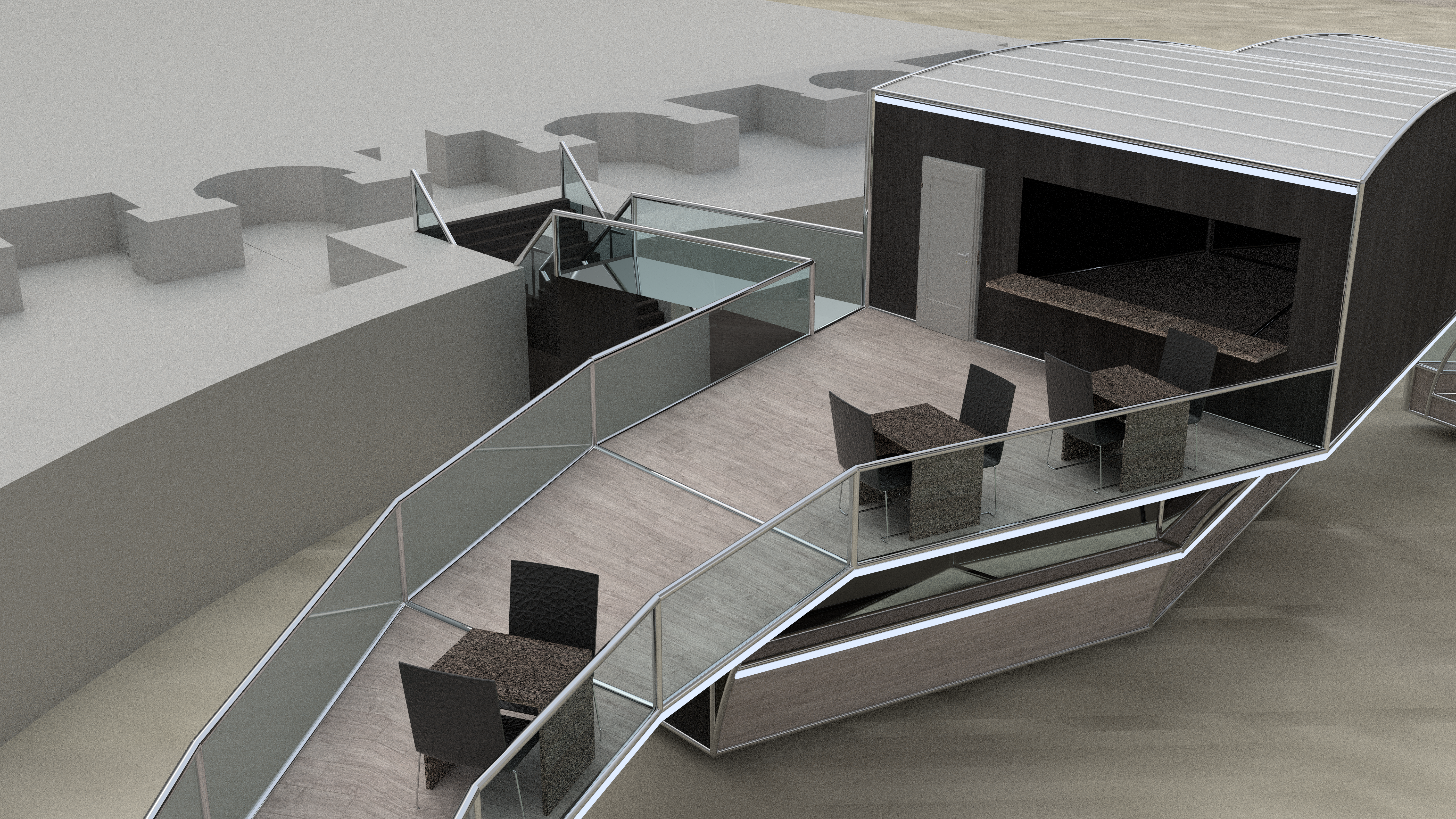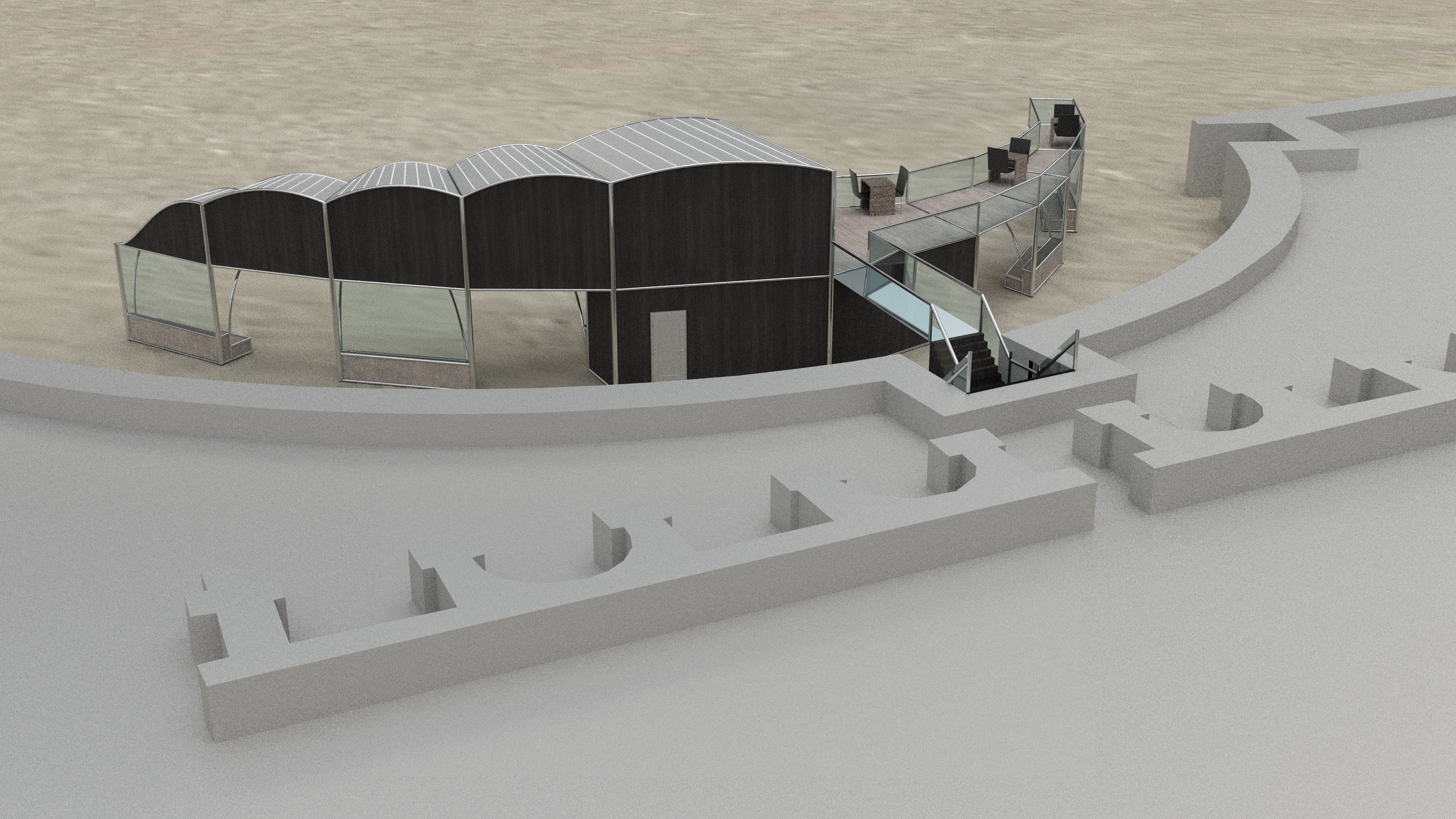 Ces représentations ont été conçues à l’aide du logiciel Rhino 3D, le rendu a été effectué par le logiciel V-Ray, et les ajustements de luminosité ainsi que les nuances ont été méticuleusement perfectionnés au moyen de Photoshop.